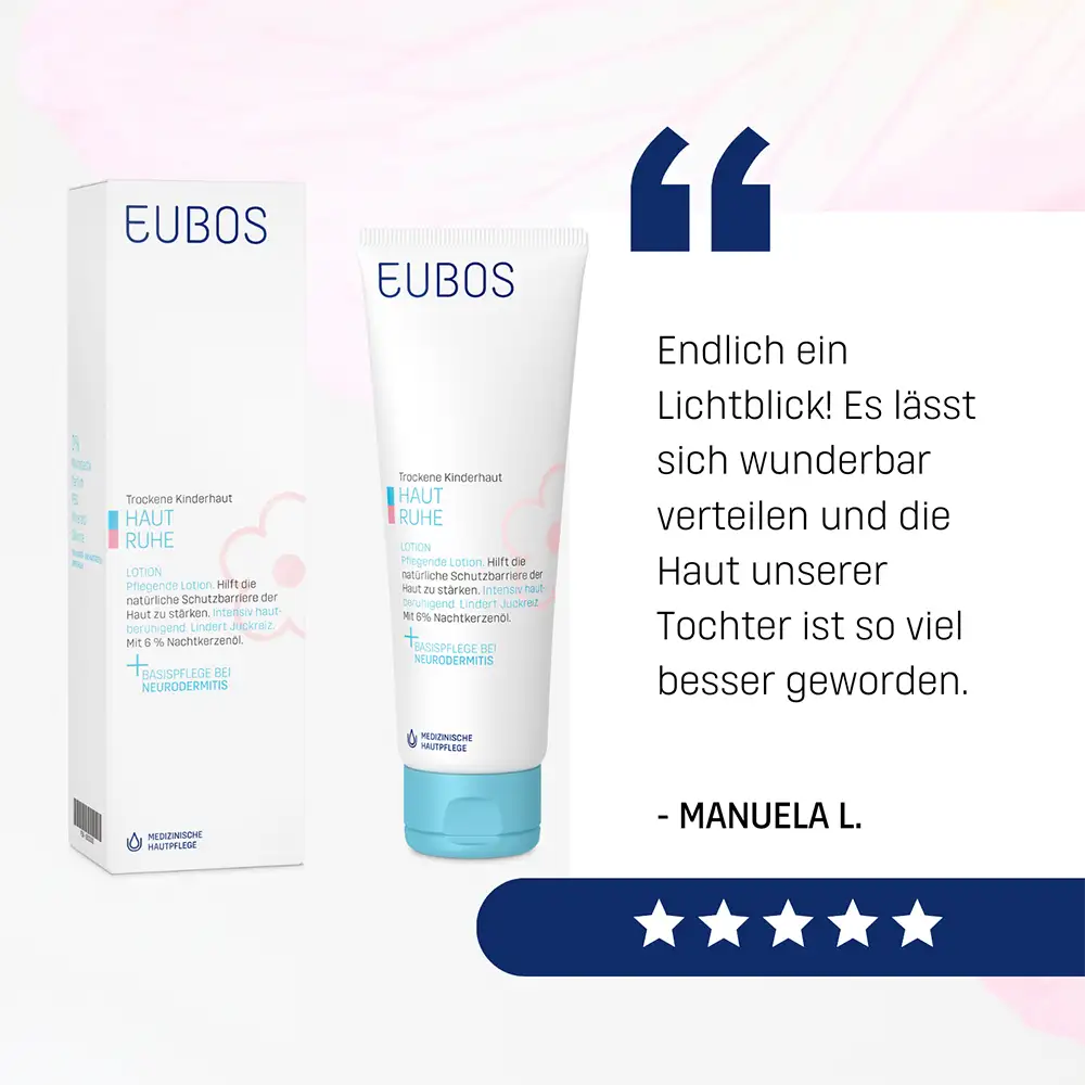 Quando la pelle è secca su tutto il corpo, prude, tira ed è fastidiosa. Dalla pelle secca possono inoltre svilupparsi facilmente irritazioni, poiché la barriera cutanea risulta meno efficiente. EUBOS BABY PELLE SECCA EMULSIONE è un prodotto specifico per la cura quotidiana della pelle secca di neonati e bambini e aiuta a supportare la funzione protettiva e di barriera della pelle. Olio di Mandorle, olio di Jojoba e Burro di Karité contribuiscono all’azione nutriente e protettiva. L’estratto di Iperico contribuisce a calmare la pelle, mentre Allantoina e Pantenolo aiutano a mantenere l’integrità cutanea e a supportarne la rigenerazione. EUBOS BABY PELLE SECCA EMULSIONE aumenta in modo intenso e duraturo l’idratazione della pelle secca, renderndola più morbida e liscia. Test dermatologici e clinici confermano l’ottima efficacia e tollerabilità dell’emulsione corpo. Il prodotto può essere utilizzato come coadiuvante durante la terapia in caso di dermatite atopica ed è adatto anche agli adulti. Tutti i prodotti dell’azienda familiare Dr. Hobein con il marchio EUBOS sono realizzati in Germania dal 1930 e sviluppati secondo le più recenti conoscenze scientifiche.