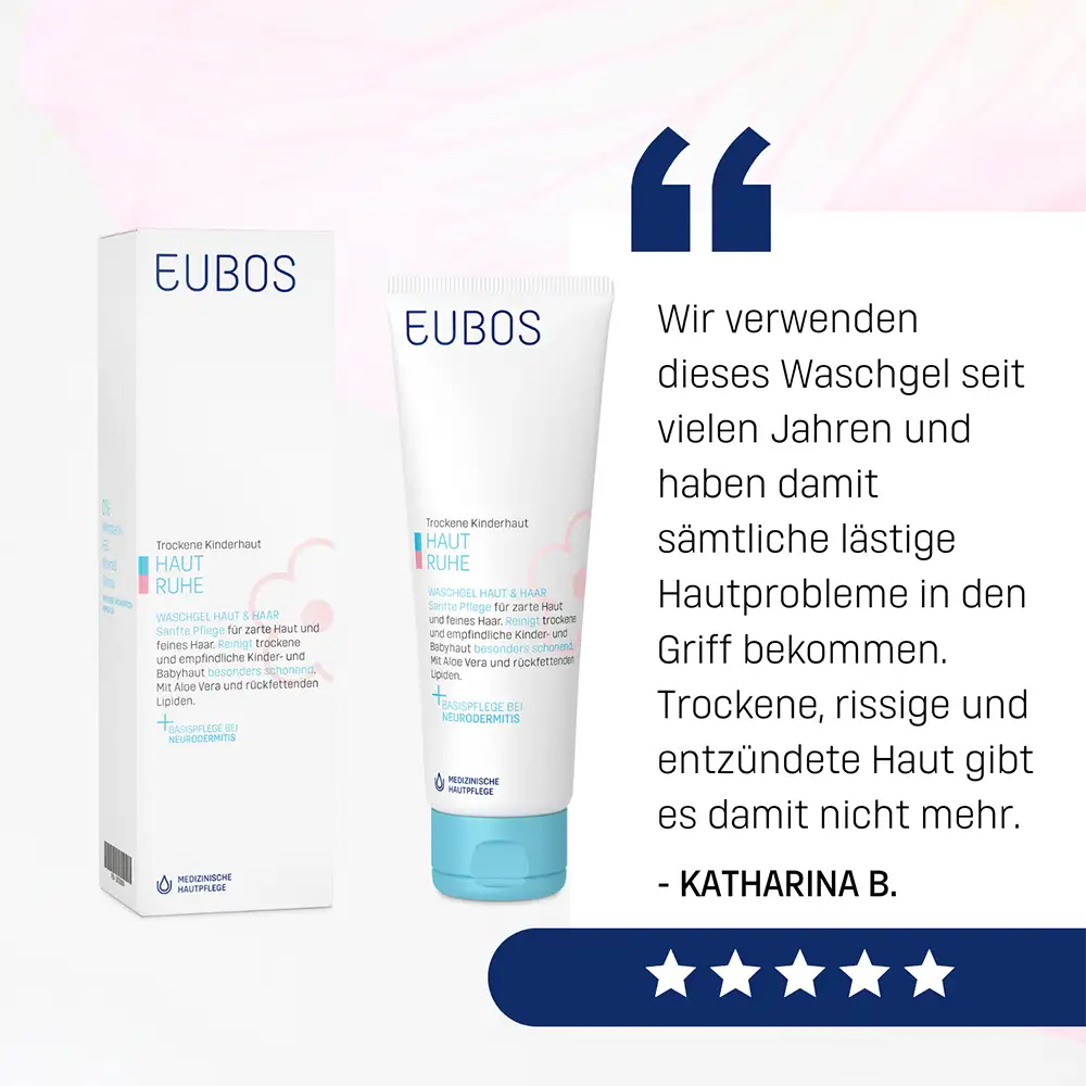 Nei bambini, la funzione di barriera della pelle non è ancora completamente sviluppata: per questo è particolarmente importante mantenere stabile il mantello acido protettivo, utilizzando un gel detergente a pH fisiologico. Quando la barriera cutanea è meno efficiente, la pelle tende a seccarsi più facilmente e a diventare più sensibile e reattiva. EUBOS BABY PELLE SECCA GEL DETERGENTE CORPO & CAPELLI detergere delicatamente la pelle ed è a pH fisiologico. Grazie ai minerali marini e al gel di Aloe Vera, aiuta a calmare la pelle sensibile dei bambini; l’olio di Lavanda naturale contribuisce a favorire una sensazione di rilassamento. I lipidi dermoaffini e restitutivi aiutano a proteggere la pelle dalla disidratazione. Consigliato da pediatri e dermatologi. Tutti i prodotti dell’azienda familiare Dr. Hobein con il marchio EUBOS sono realizzati in Germania da oltre 90 anni e sviluppati secondo le più recenti conoscenze scientifiche.