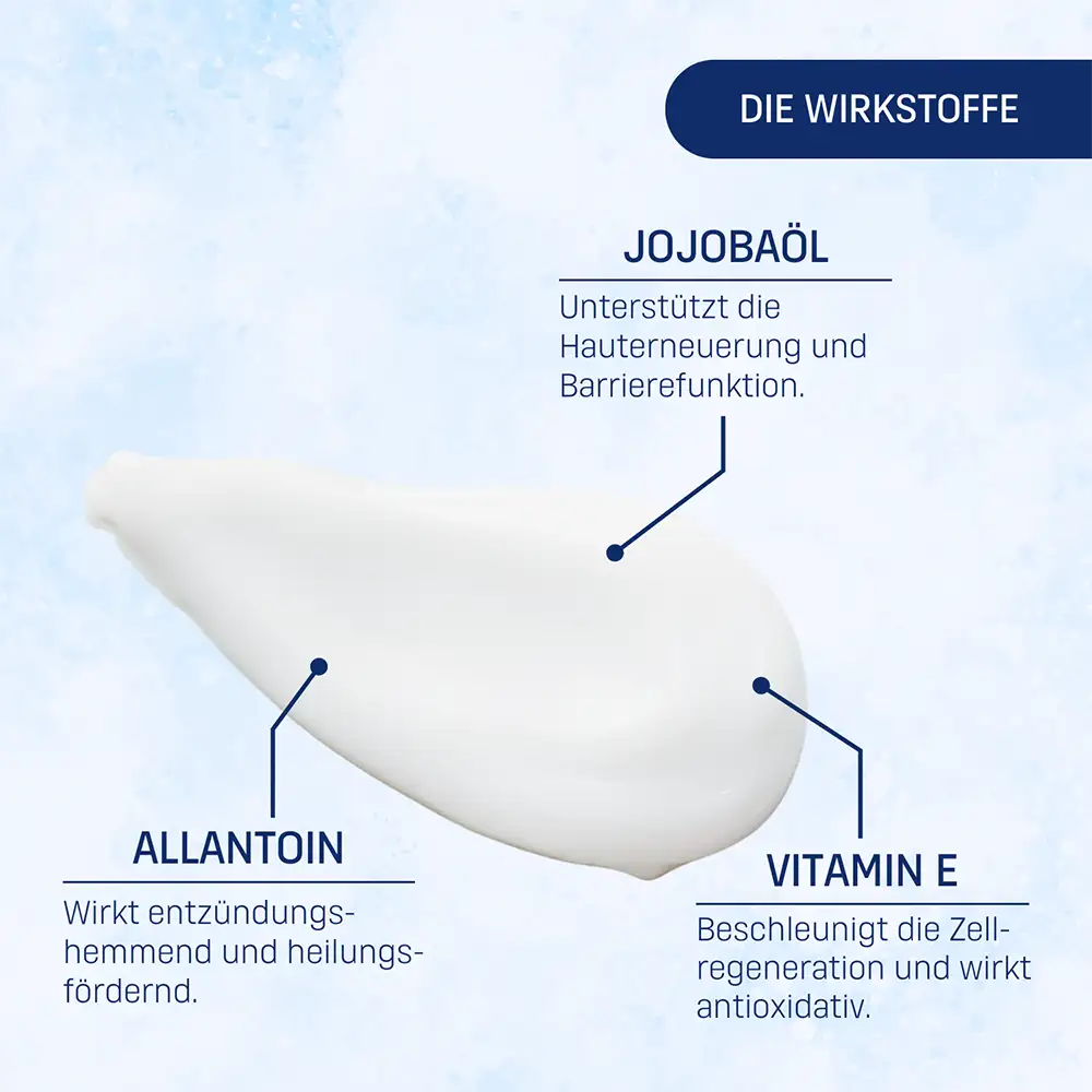 Hinweis: Bitte beachten Sie, dass es sich bei den hier genannten Ingredients um die aktuell produzierte Rezeptur handelt. Da wir dauerhaft bemüht sind, die Zusammensetzung unserer Produkte zu optimieren und stets den neuesten dermatologischen Erkenntnissen anzupassen, kann es im Ausnahmefall vorkommen, dass Sie in der Apotheke auch eine Packung mit einer leicht abweichenden Formulierung finden. Im Zweifelsfall berät Sie Ihr Apotheken-Team.