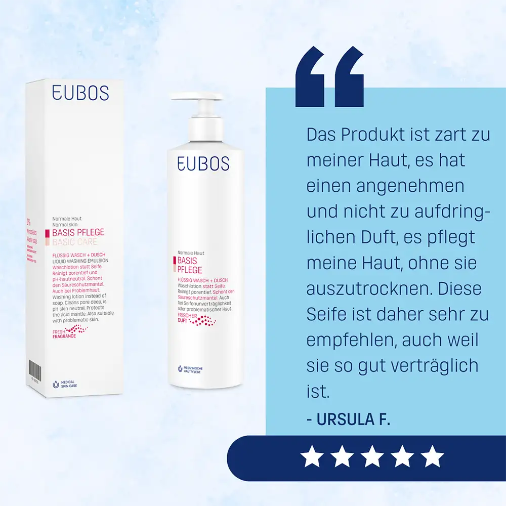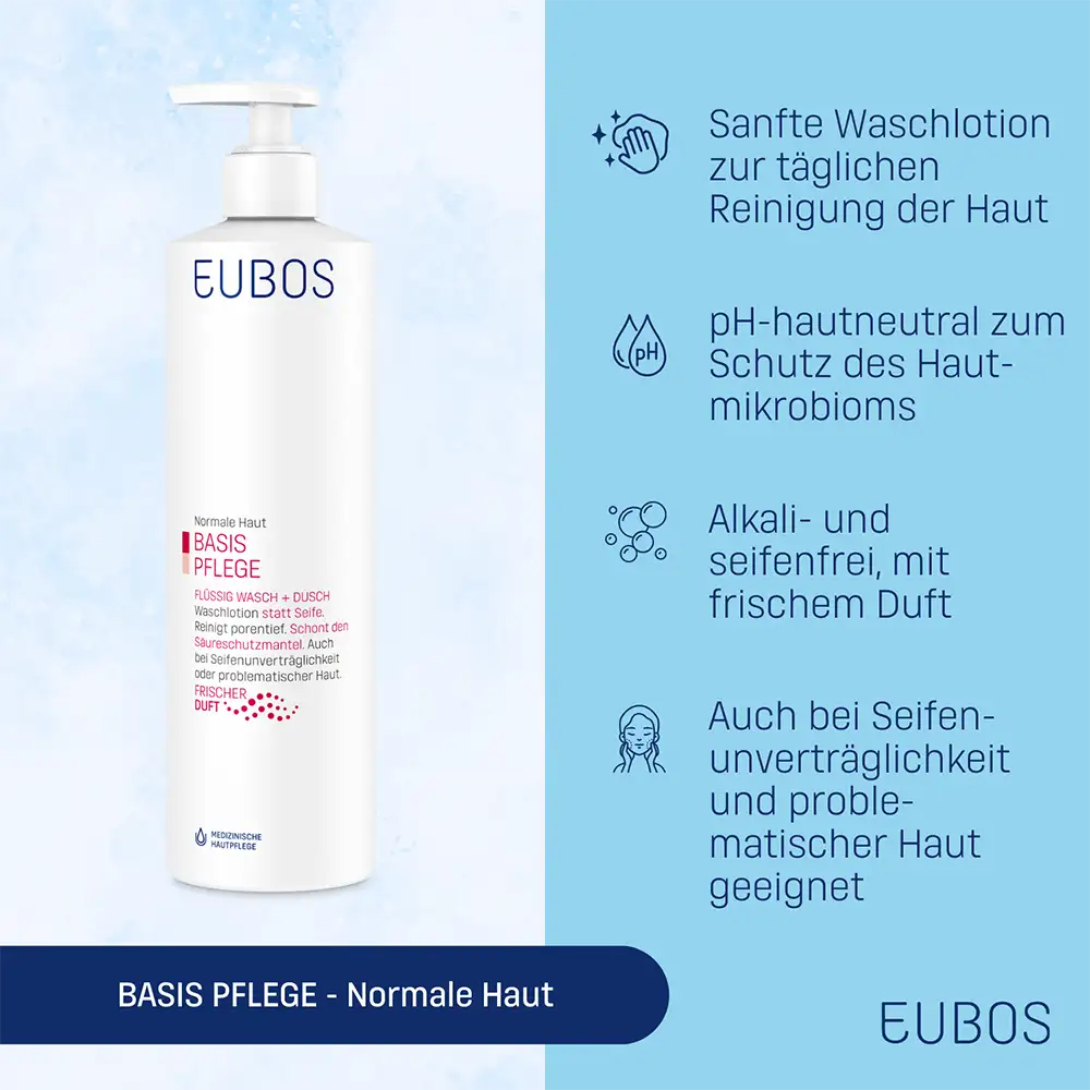 Il sapone può alterare il naturale mantello acido protettivo della pelle, fondamentale per proteggerla dalle aggressioni esterne. EUBOS BASE DETERGENTE LIQUIDO PROFUMATO DISPENSER, è senza sapone e, grazie al pH neutro per la pelle, aiuta a rispettare il mantello acido protettivo. Contiene tensioattivi delicati, per una detersione delicata ma accurata: è quindi adatto anche in caso di pelle problematica o impura, anche come coadiuvante durante trattamenti specifici. Con l’uso regolare, l’Allantoina contribuisce ad attenuare le sensazioni di fastidio cutaneo, mentre un fattore idratante naturale aiuta a mantenere la pelle idratata. EUBOS BASE DETERGENTE LIQUIDO PROFUMATO DISPENSER è privo di microplastiche e saponi alcalini. La tollerabilità cutanea è dermatologicamente testata.Tutti i prodotti Eubos dell’azienda familiare Dr. Hobein, specializzata nella cura dermocosmetica della pelle, sono prodotti in Germania dal 1930 e costantemente sviluppati secondo le più recenti acquisizioni scientifiche. È disponibile anche nel formato ecoricarica da 400 ml: più prodotto, meno imballaggi.