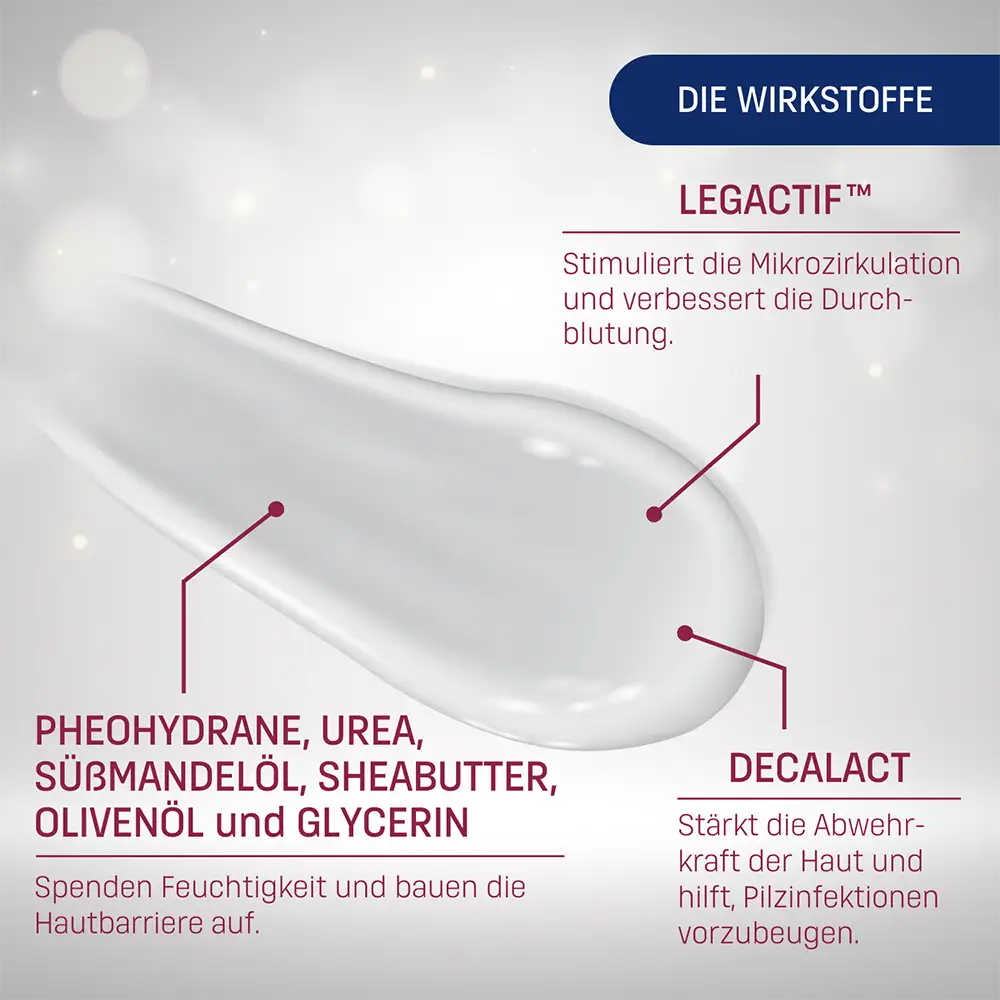 - L’estratto vegetale LEGACTIF™ contenuto nella crema per gambe e piedi ha un effetto distensivo e rivitalizzante su gambe stanche e pesanti