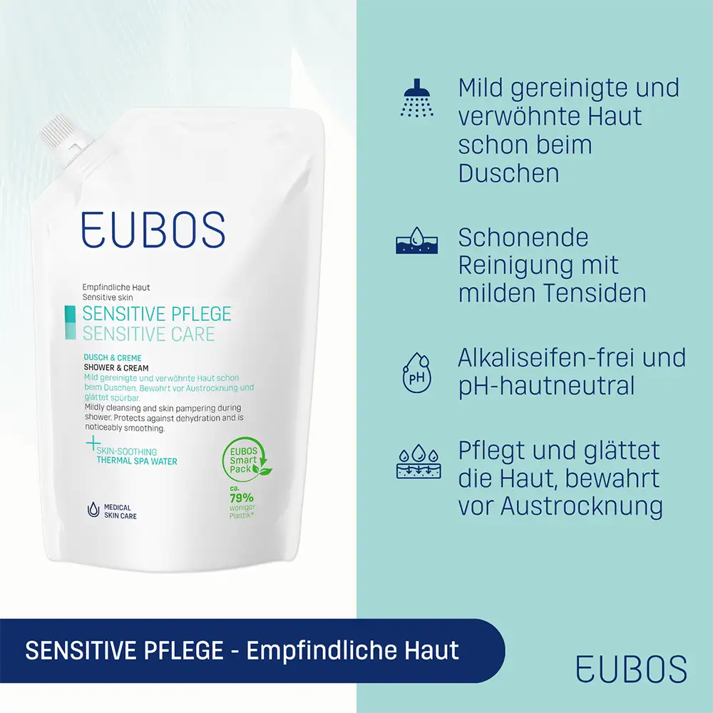 EUBOS SENSITIVE DOCCIACREMA è disponibile anche nel flacone da 200 ml. Tutti i prodotti del marchio EUBOS, dell’azienda familiare Dr. Hobein, sono prodotti in Germania da oltre 90 anni e costantemente sviluppati sulla base delle più recenti conoscenze scientifiche.