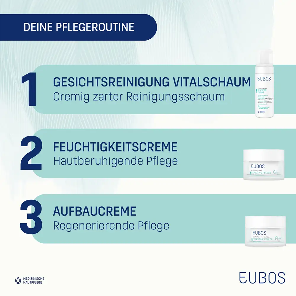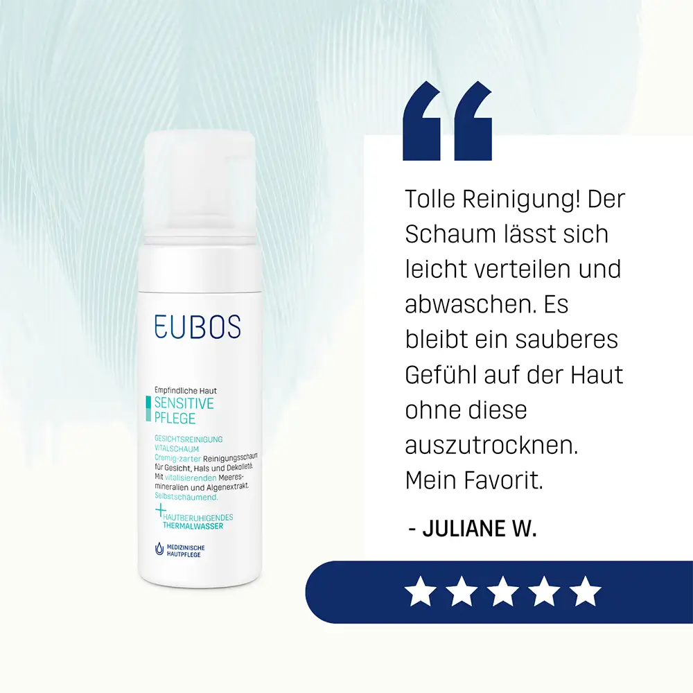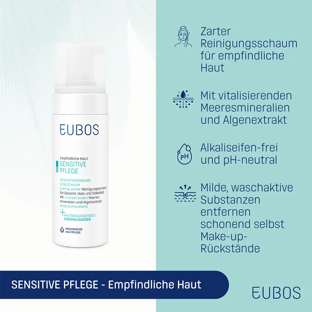 La pelle sensibile necessita di una detersione particolarmente delicata: EUBOS SENSITIVE MOUSSE DETERGENTE VISO DELICATA rimuove impurità e residui di make-up in modo delicato ma efficace, rispettando la barriera cutanea grazie ai componenti relipidizzanti e alla sua formula pH-neutra sulla pelle. Minerali marini ed estratto di alghe contribuiscono a donare vitalità e una piacevole sensazione di freschezza. La tollerabilità cutanea della mousse detergente è dermatologicamente testata. Tutti i prodotti dell’azienda familiare Dr. Hobein con il marchio Eubos, sono prodotti in Germania dal 1930 e continuamente sviluppati secondo le più recenti conoscenze scientifiche.