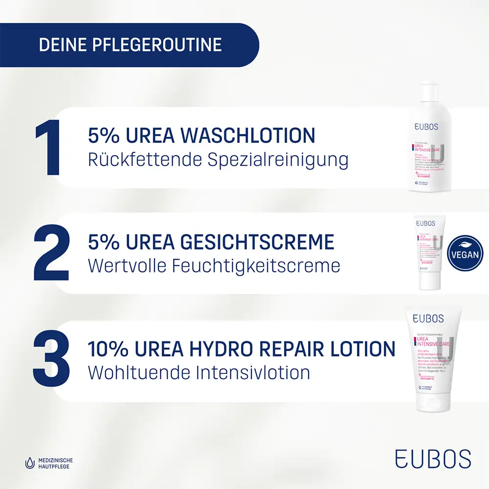 EUBOS UREA CREMA VISO 5% è formulata per rispondere alle esigenze della pelle secca, che tira e che necessita di un apporto extra di idratazione. La presenza di 5% di Urea e Glicerina aiuta a migliorare il livello di idratazione e a rendere la pelle più morbida e confortevole. L’olio di Macadamia svolge un’azione nutriente e protettiva, mentre la texture leggera si assorbe rapidamente, contribuendo a ridurre la sensazione di tensione e lasciando la pelle più liscia e curata. È indicata come coadiuvante nel trattamento della pelle molto secca o irritata, anche in caso di dermatite atopica, pelle diabetica o xerosi senile. La formula è vegana e priva di microplastiche, profumo, PEG, oli minerali e lanolina. Tutti i prodotti EUBOS, dell’azienda familiare Dr. Hobein, sono realizzati in Germania da oltre 90 anni e aggiornati secondo le più recenti conoscenze scientifiche.