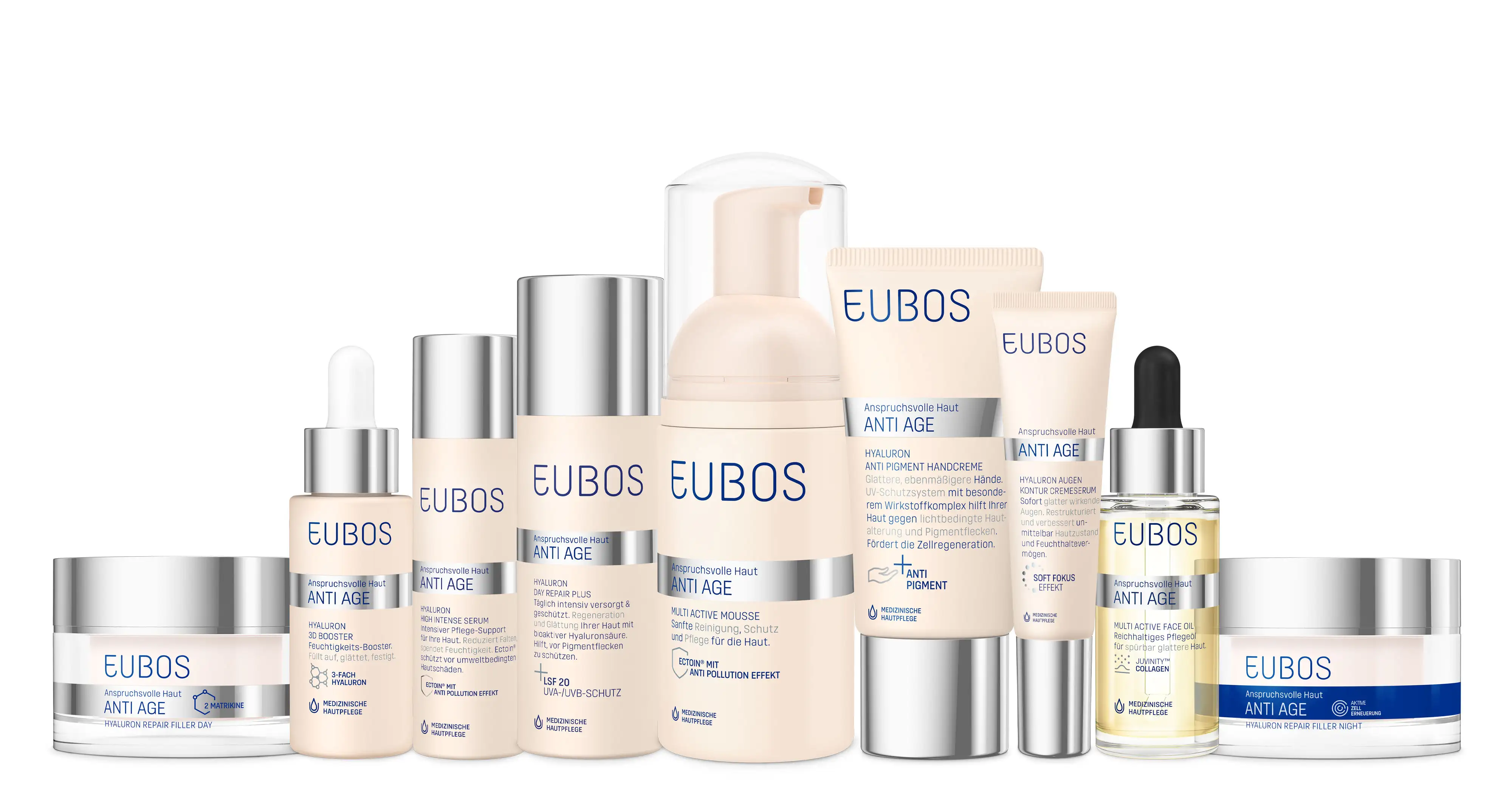 La linea EUBOS ANTI AGE contribuisce a un’idratazione duratura, aiuta a proteggere la pelle dagli agenti esterni, attenua la visibilità delle rughe e stimola la sintesi del collagene, favorendo una pelle più compatta e distesa. La pelle appare visibilmente più fresca e uniforme.