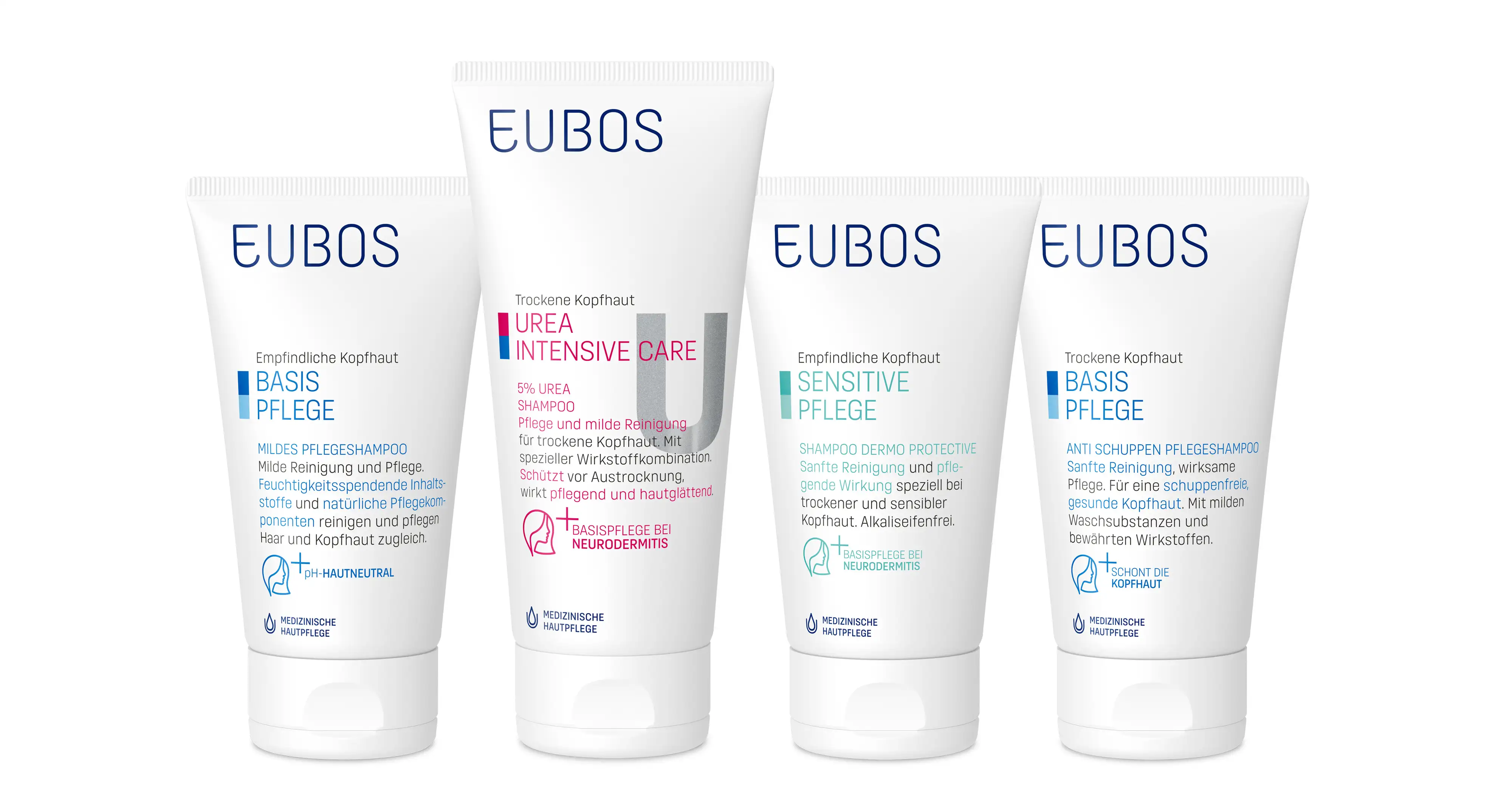 Gli shampoo EUBOS detergono delicatamente e sono indicati per il cuoio capelluto secco e stressato. Accanto alla cura di base, lo shampoo al 5% di Urea apporta un maggiore livello di idratazione, utilizzabile come supporto cosmetico anche in caso di cuoio capelluto a tendenza neurodermitica o psoriasica. Lo SHAMPOO RILIPIDIZZANTE della linea SENSITIVE, con sistema di attivi mirato, aiuta a prendersi cura delle strutture del capello indebolite, depositandosi selettivamente sulle zone più bisognose. Per i capelli fini dei bambini, il GEL DETERGENTE CORPO & CAPELLI detergere delicatamente e dona una sensazione di comfort, accompagnata da un gradevole profumo di lavanda.