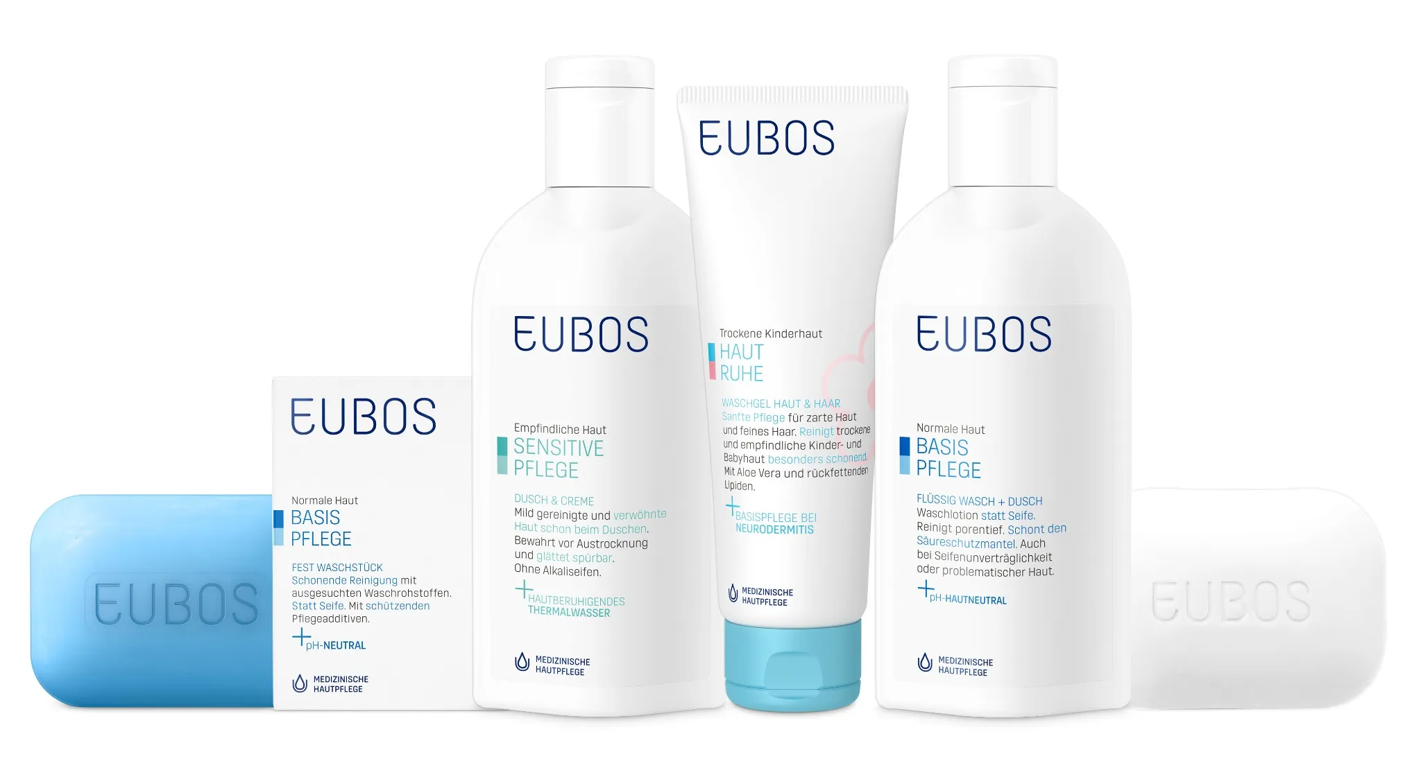 Il detergente solido EUBOS è stato un pioniere: oltre 60 anni fa ha ripensato la detersione del corpo, senza l'utilizzo del sapone. Oggi è affiancato da numerosi detergenti e oli da bagno che detergono delicatamente e allo stesso tempo si prendono cura della pelle normale, sensibile o molto secca. Molti prodotti sono disponibili nel conveniente formato ecoricarica o in pratici dispenser. Inoltre, EUBOS propone prodotti specifici per la pelle molto sensibile dei bambini, utilizzabili come coadiuvanti in caso di pelle a tendenza neurodermitica: il gel detergente e l’olio da bagno della linea EUBOS BABY PELLE SECCA.